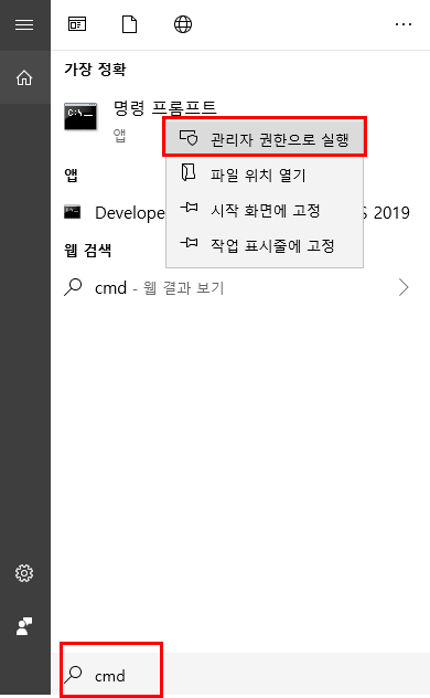 관리자:명령 프롬프트에 위에서 복사한 내용을 붙여 넣습니다(Ctrl+V)